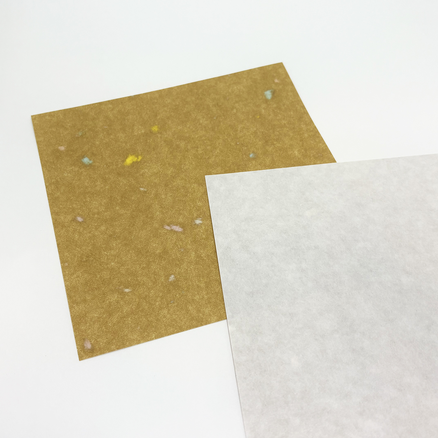 裏地が白色で、小さくちぎった紙が散りばめられた和紙です。
