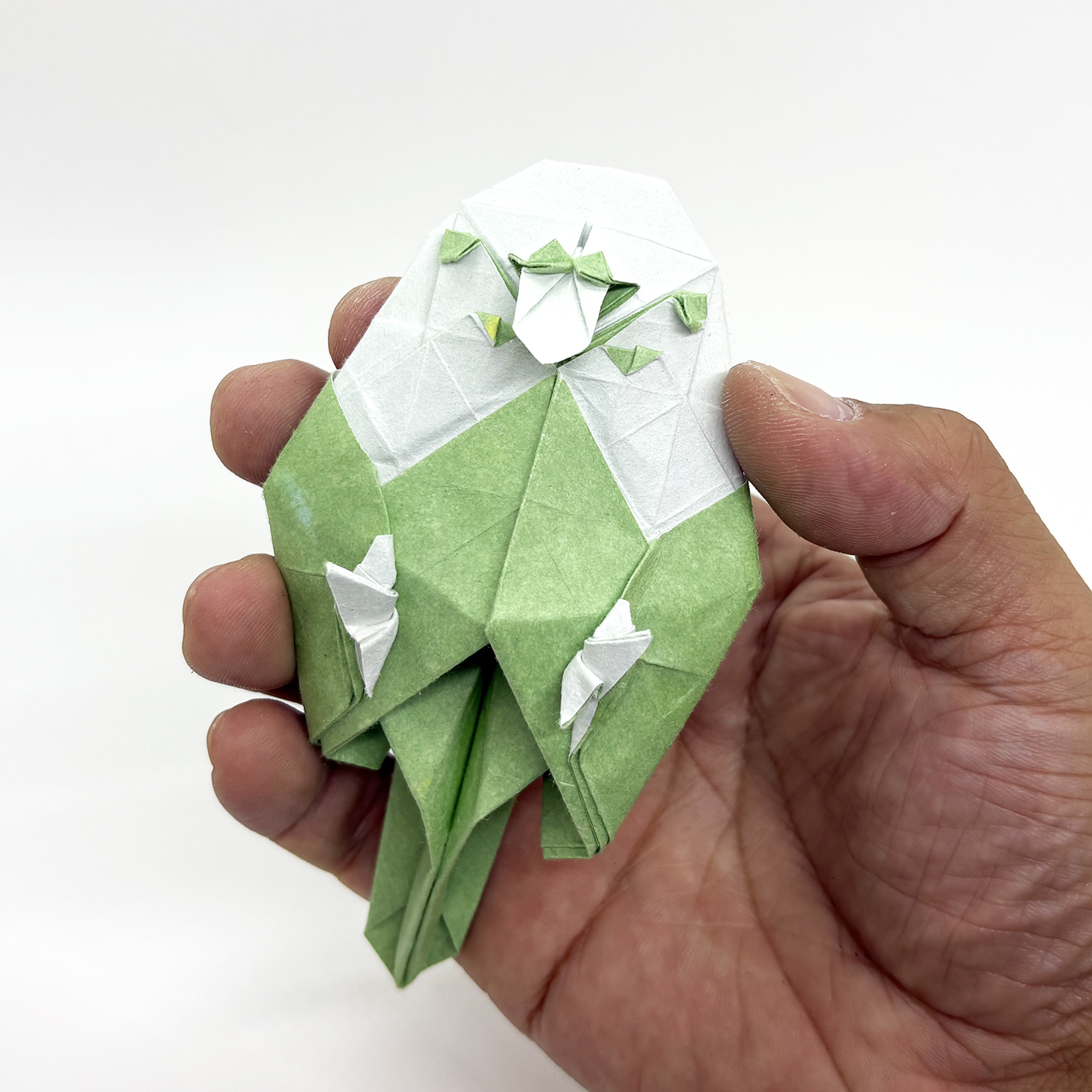 ※使用サンプルとして、「Cute & Funnyな折り紙 ―季節と動物のかわいい作品集」より満田茂さんの「セキセイインコ」を折りました。